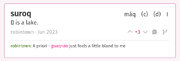 | 07:26, 22 September 2025 | Miaobubua.jpg (file) | 390 KB | Lisaki (talk | contribs) | A Toaqchaq meal containing mıaobubua made by Démeaı and Lúna. It was delicious! | 1 | |